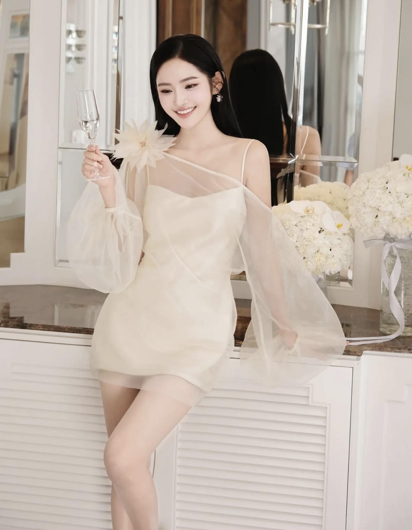 ĐẦM VOAN LƯỚI CUP NGỰC LỆCH VAI