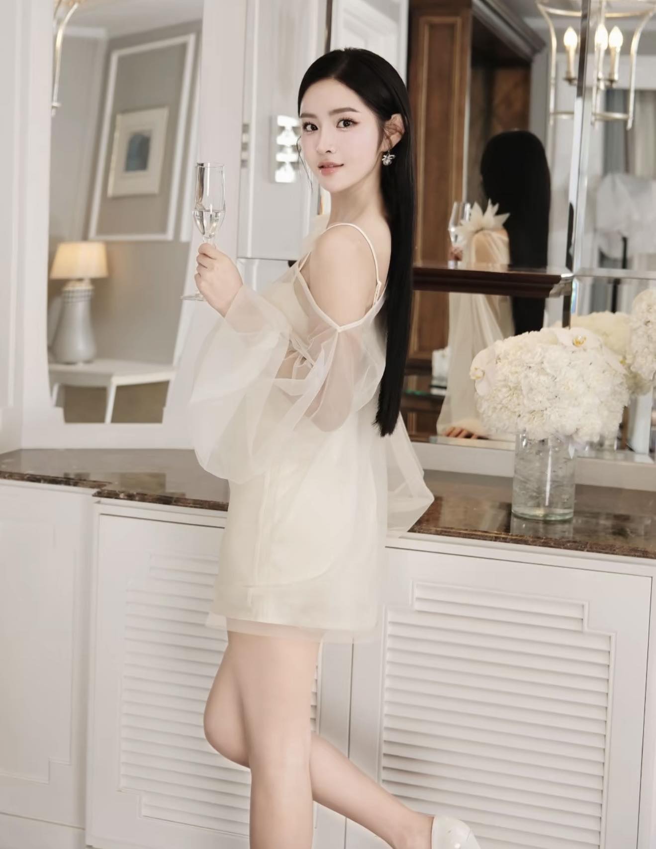 ĐẦM NGẮN KHOÉT NGỰC PHỐI TAY PHỒNG