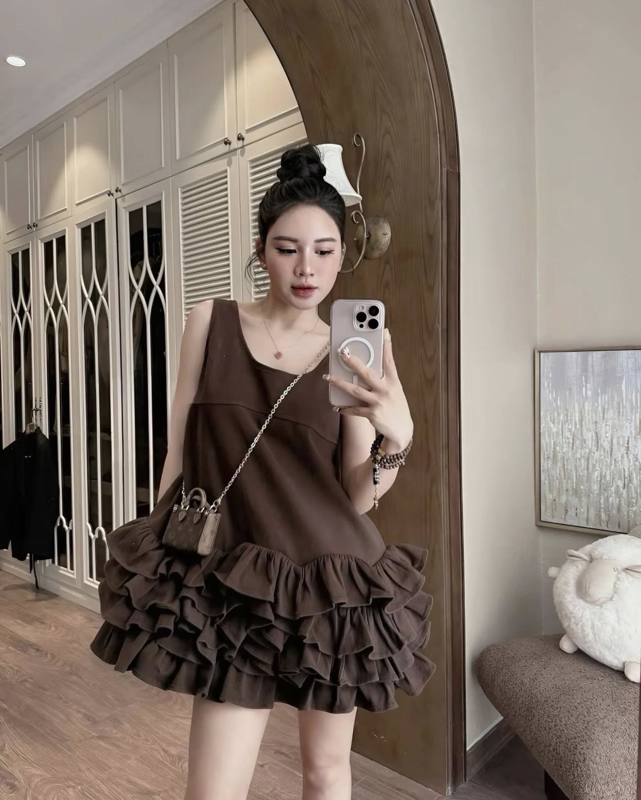 ĐẦM VOAN NGẮN 2 DÂY BÈO TẦNG
