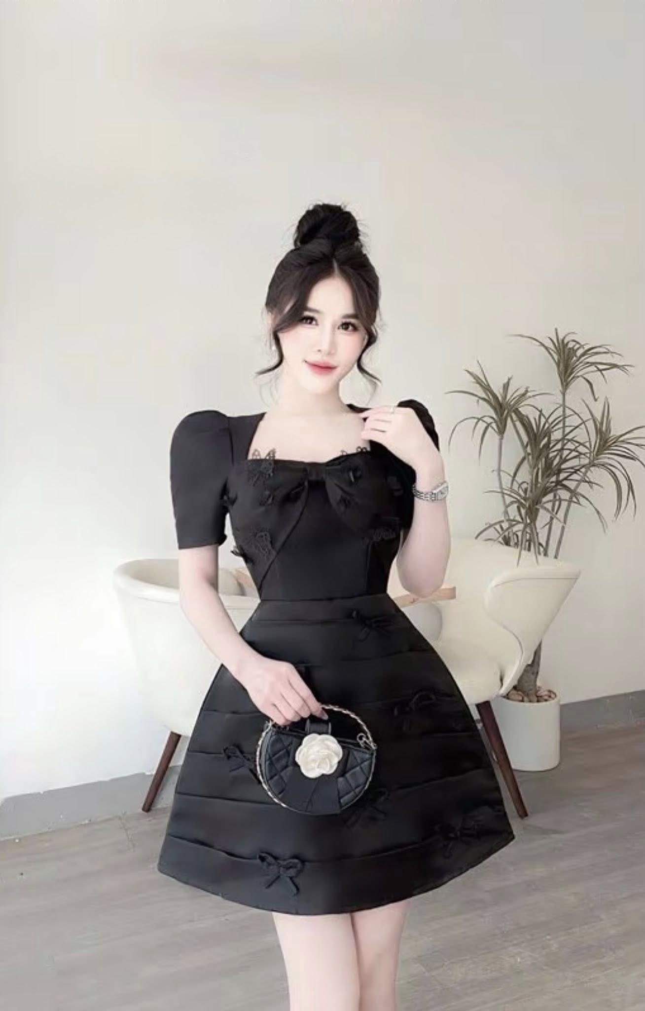 ĐẦM NGẮN TAY BỒNG ĐÍNH NƠ