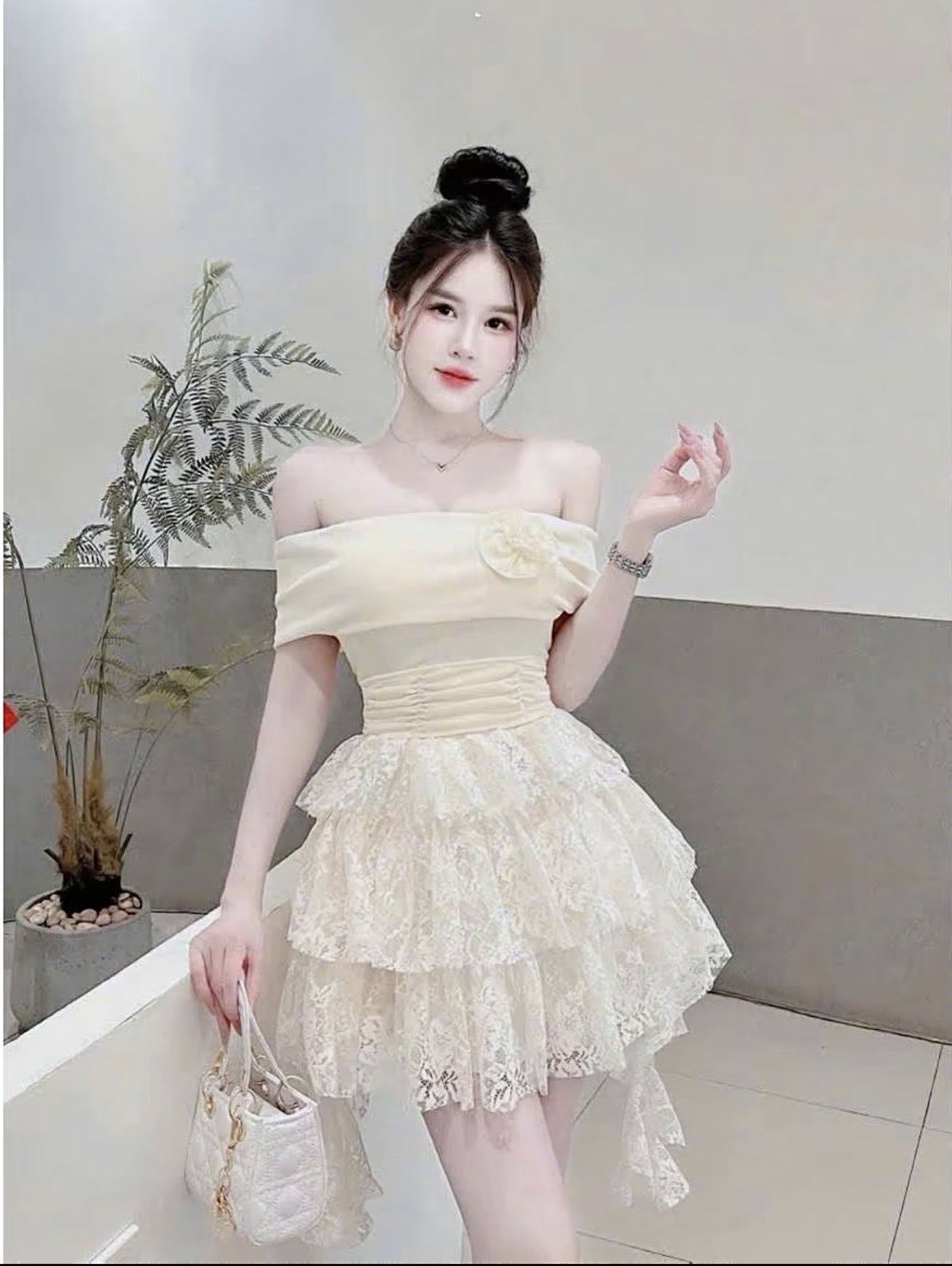 ĐẦM REN NGẮN TAY LOE DÁNG TÙNG XÒE