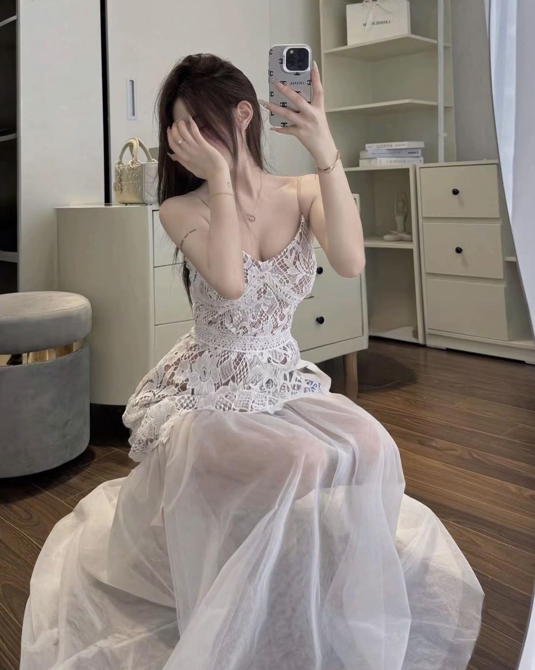 ĐẦM REN HOA DÁNG DÀI SÁT NÁCH