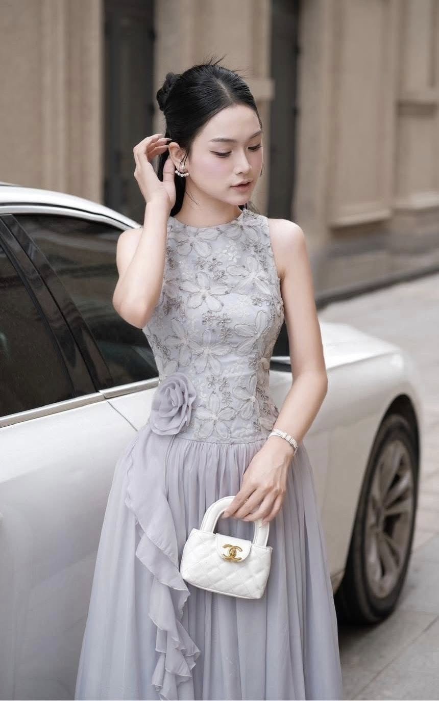 ĐẦM TAFTA KẾT HOA TRỄ VAI.