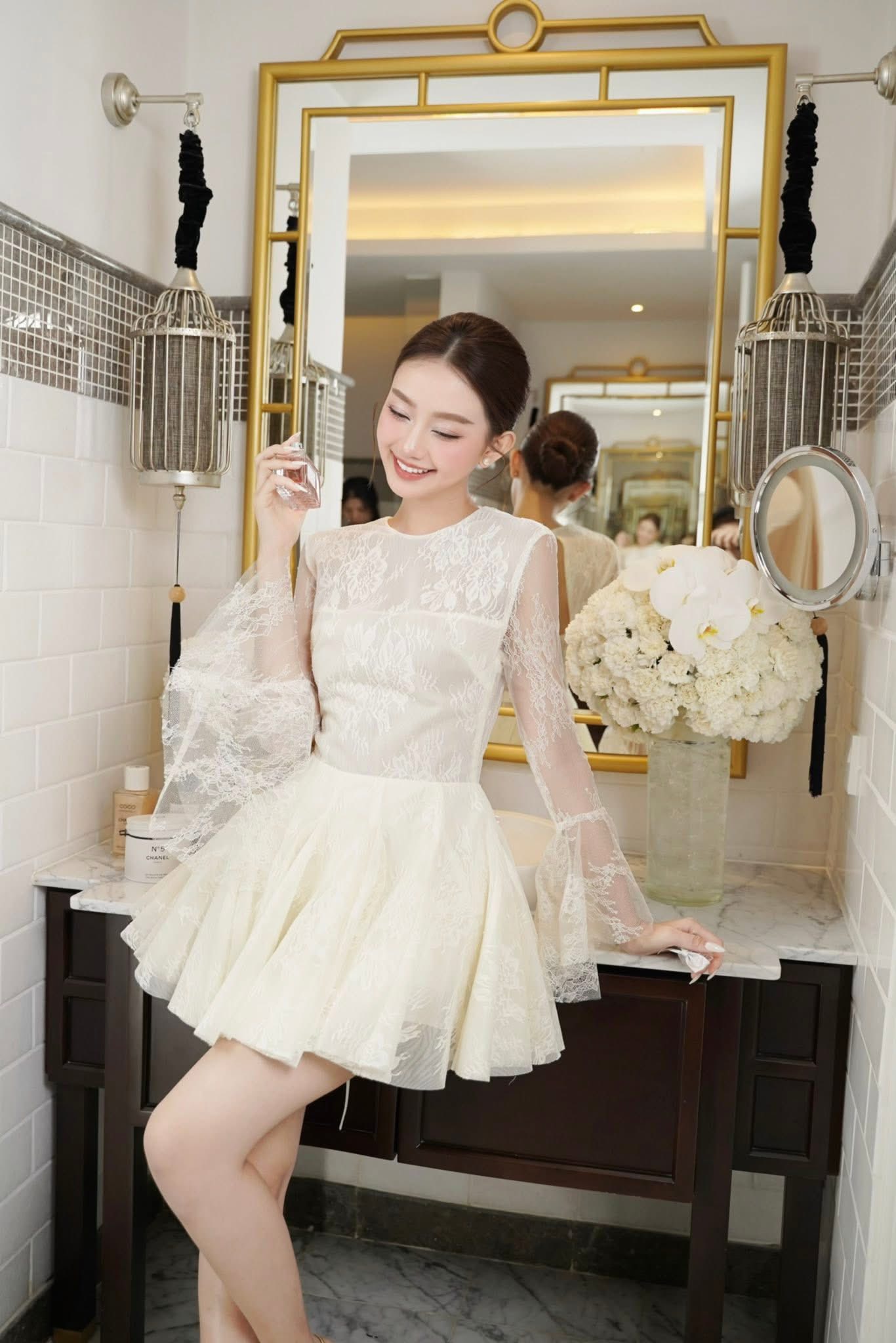ĐẦM REN TRỄ VAI PHỐI NƠ