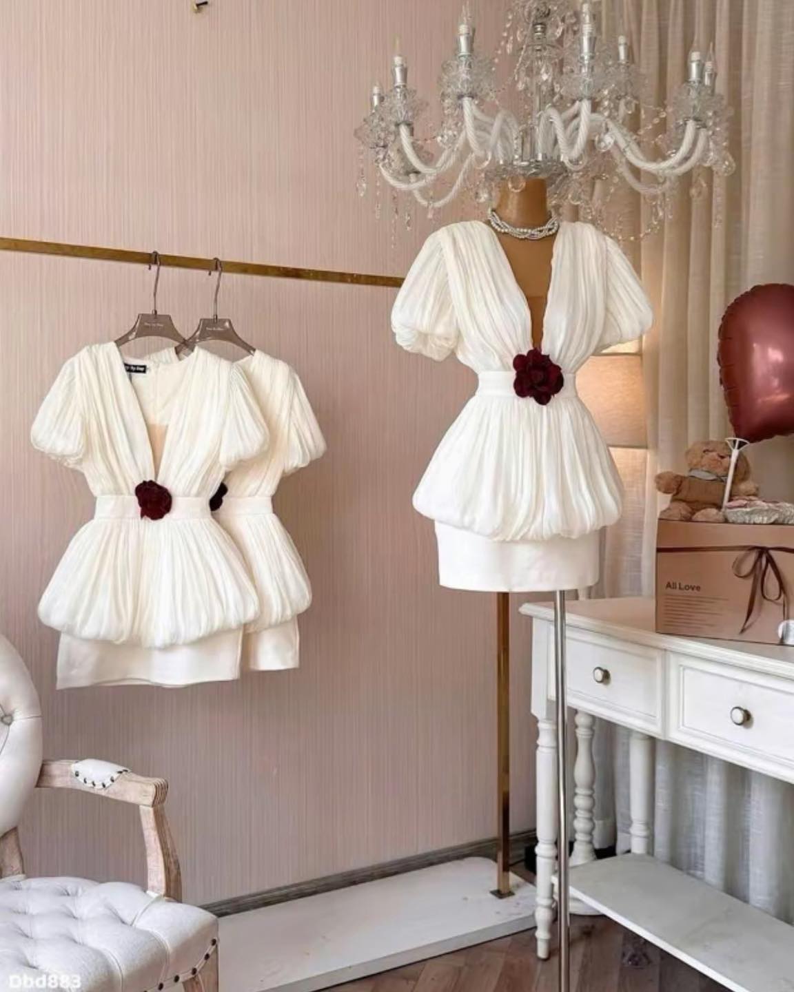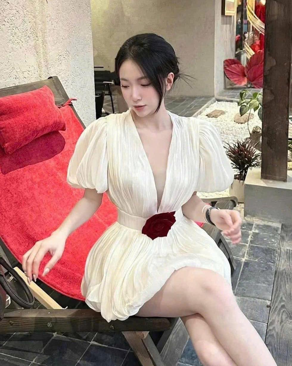 ĐẦM NGẮN KHOÉT NGỰC PHỐI TAY PHỒNG
