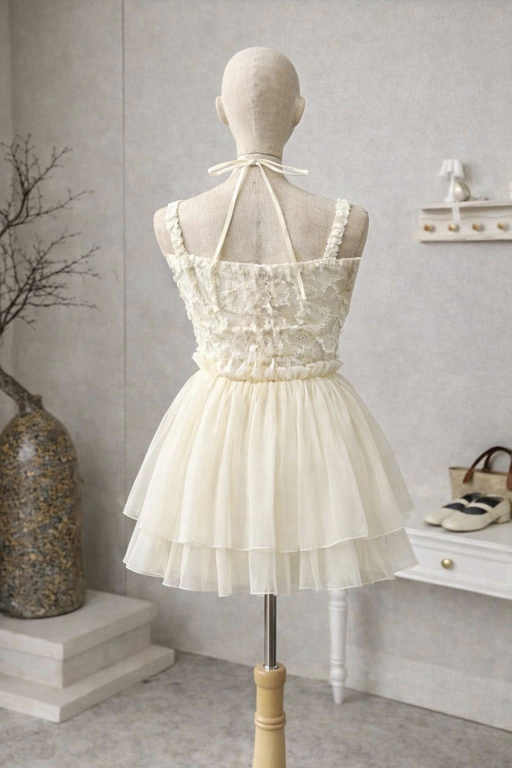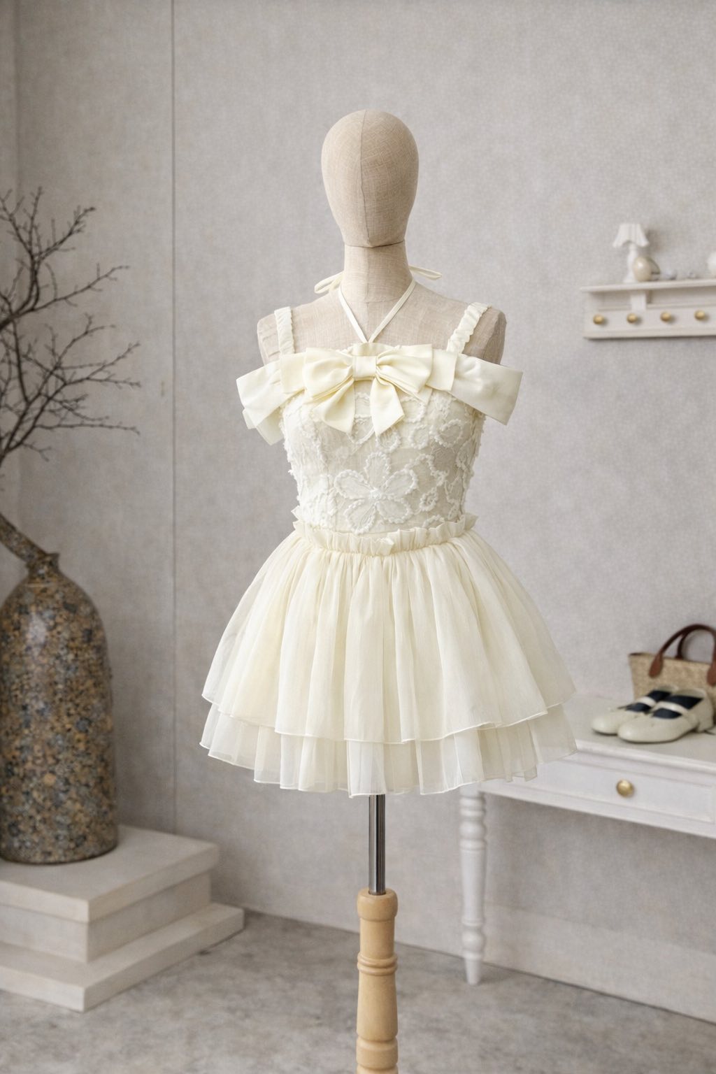 ĐẦM REN TRỄ VAI PHỐI NƠ