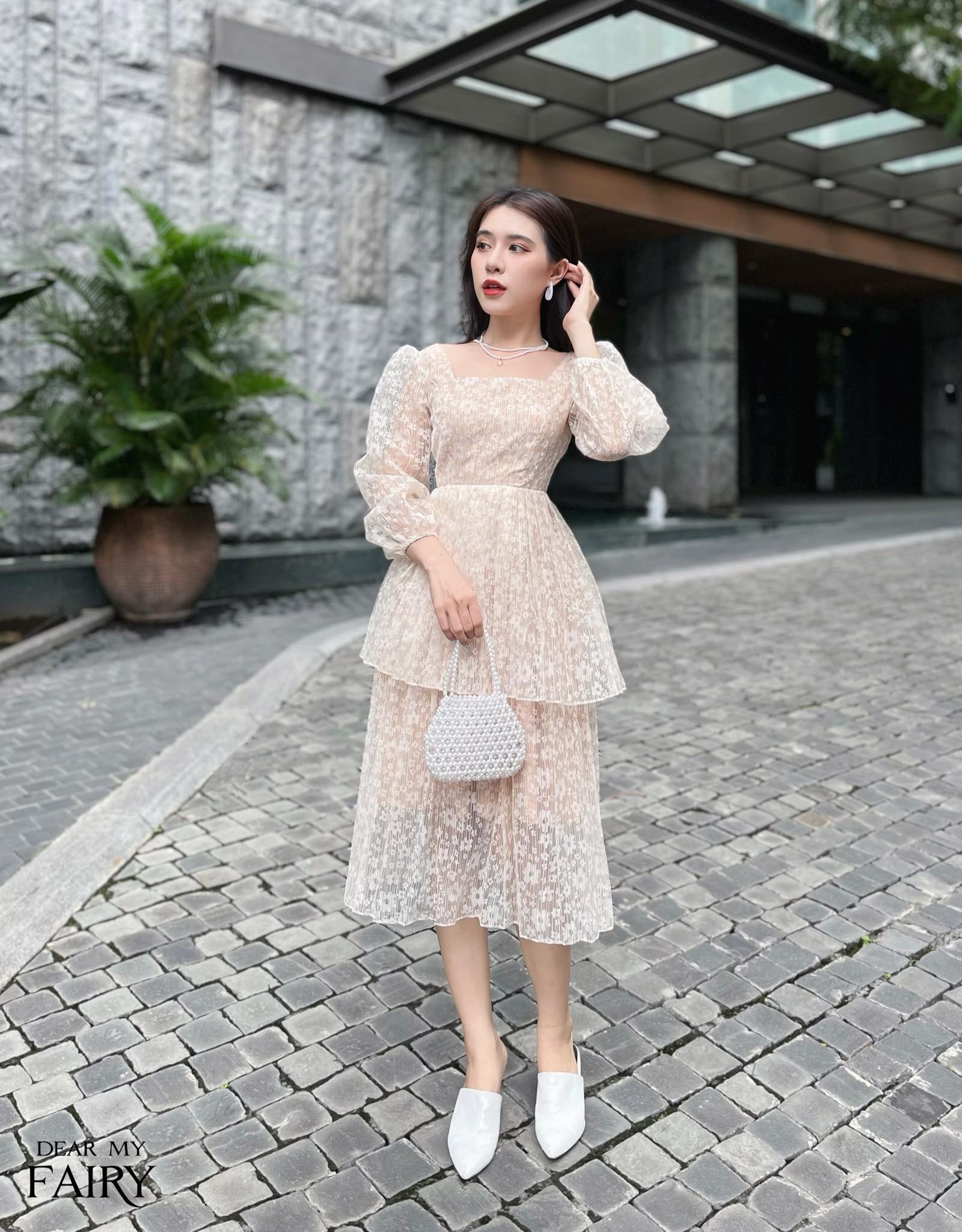 ĐẦM DÀI MORELA DRESS 2 TẦNG XẾP LY TAY DÀI