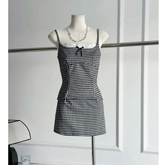 SET ÁO 2 DÂY CARO + CHÂN VÁY