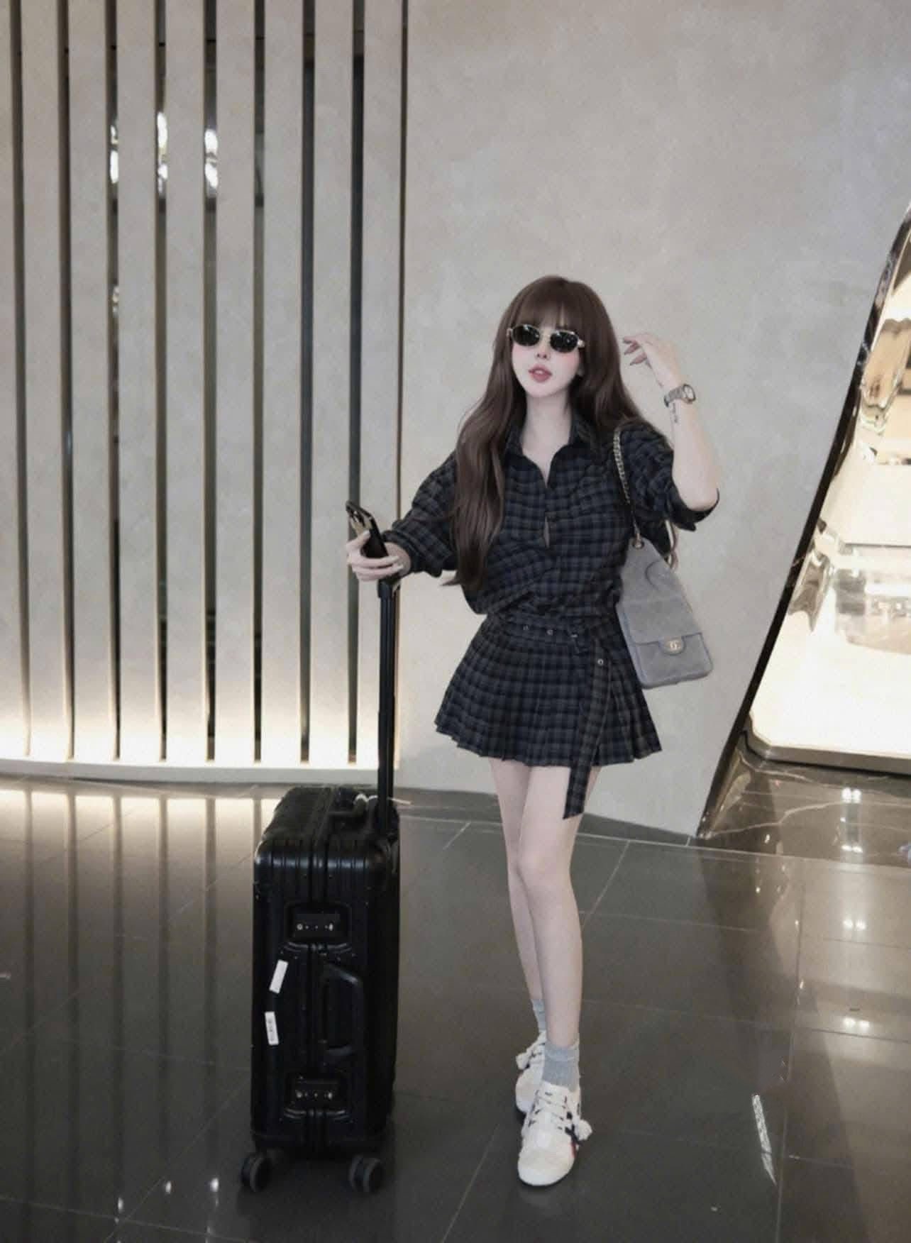 SET ÁO 2 DÂY CARO + CHÂN VÁY