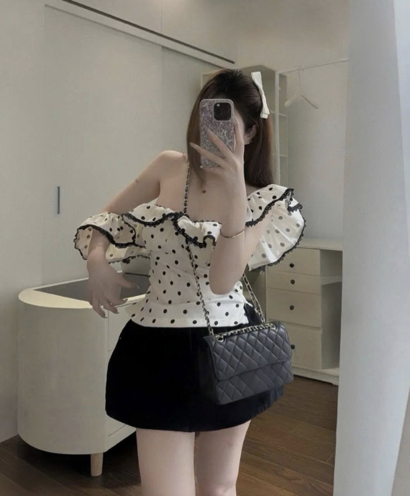 SET ÁO CHẤM BI + CHÂN VÁY BÈO