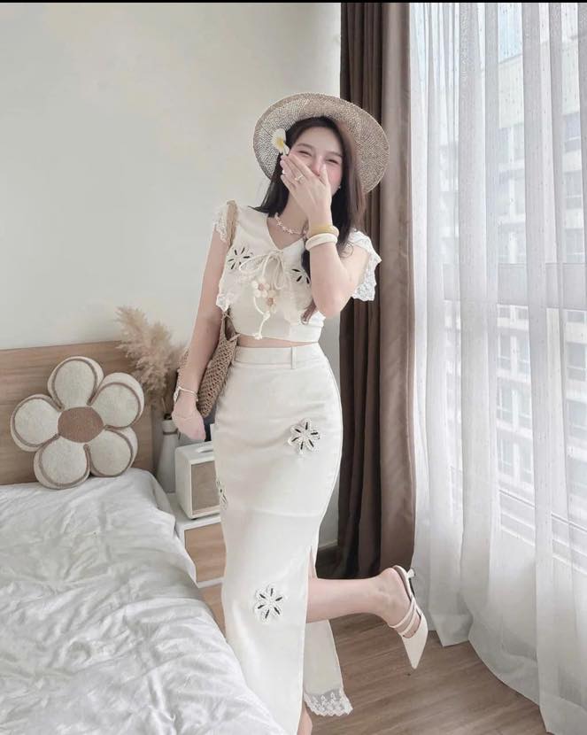 SET ÁO TAY DÀI KẾT HOA + CHÂN VÁY