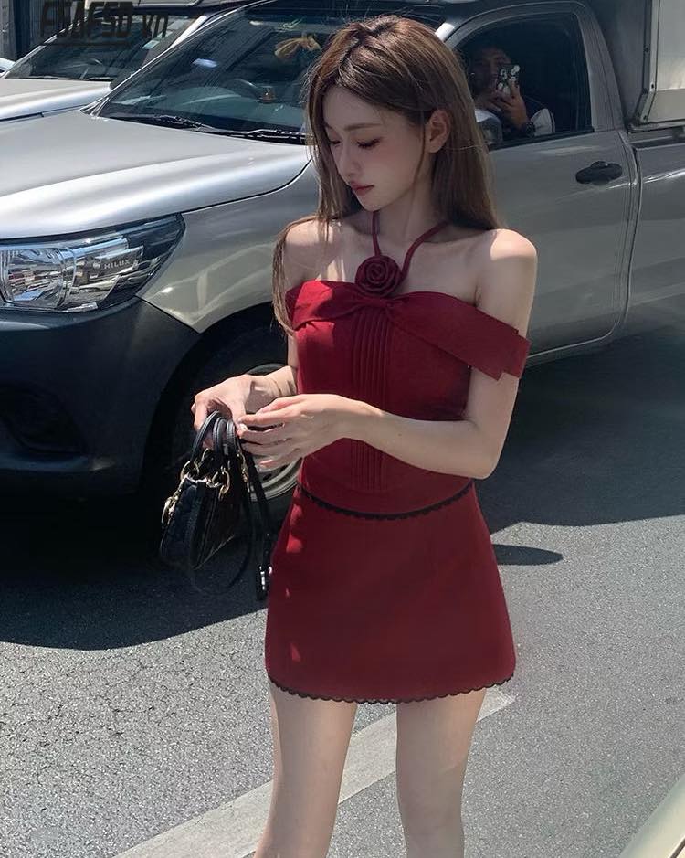 Set áo trễ dây+ chân váy