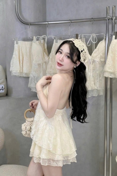ÁO YẾM HỞ LƯNG + CHÂN VÁY NGẮN