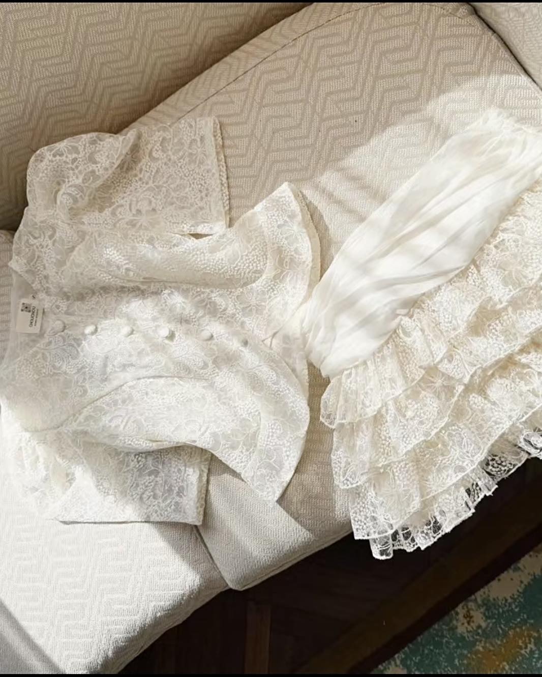 SET ÁO DẠ CỔ SEN + CHÂN VÁY REN TẦNG