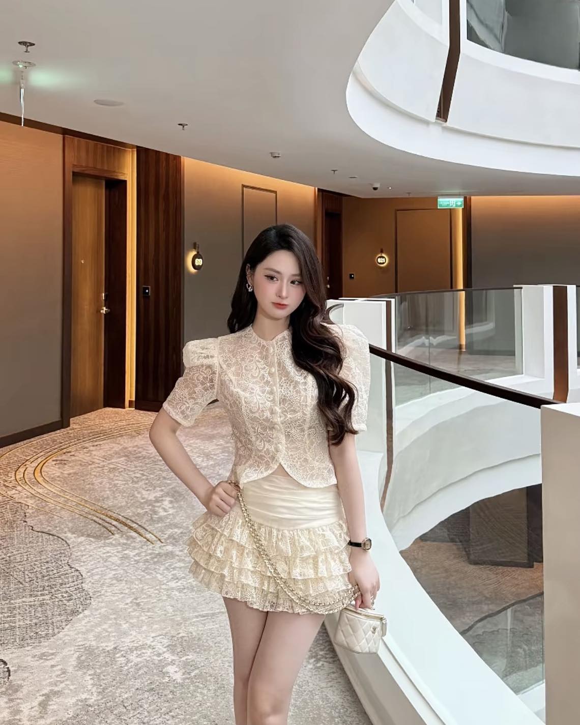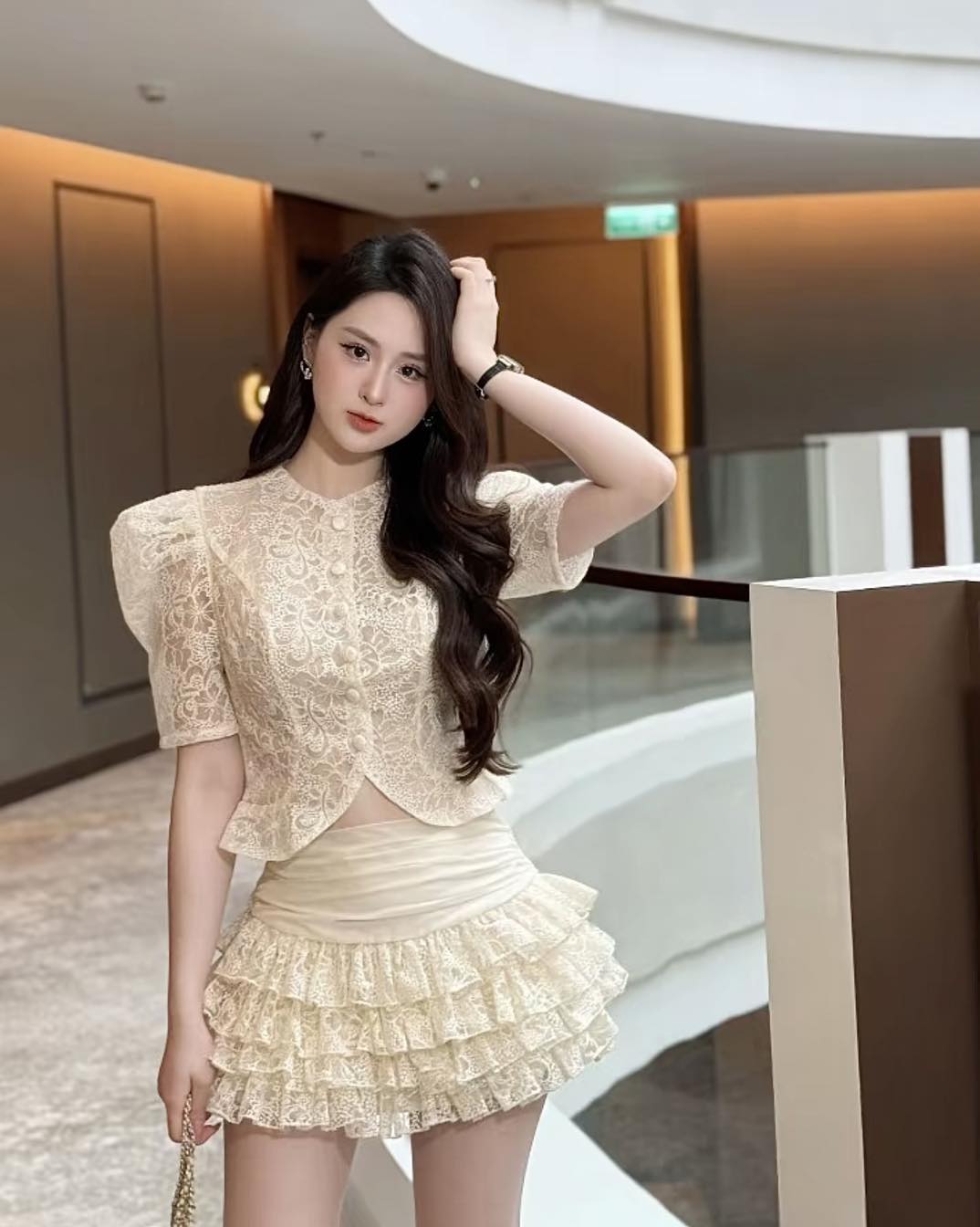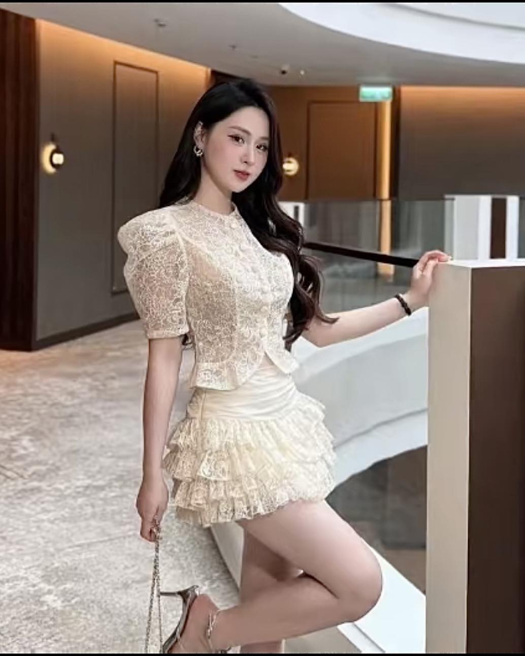 SET ÁO REN LỬNG + CHÂN VÁY BÈO TẦNG