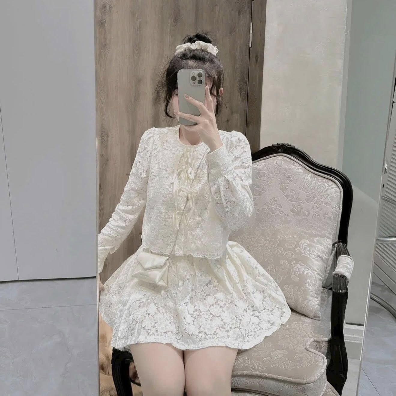 SET ÁO REN THẮT NƠ + CHÂN VÁY NGẮN
