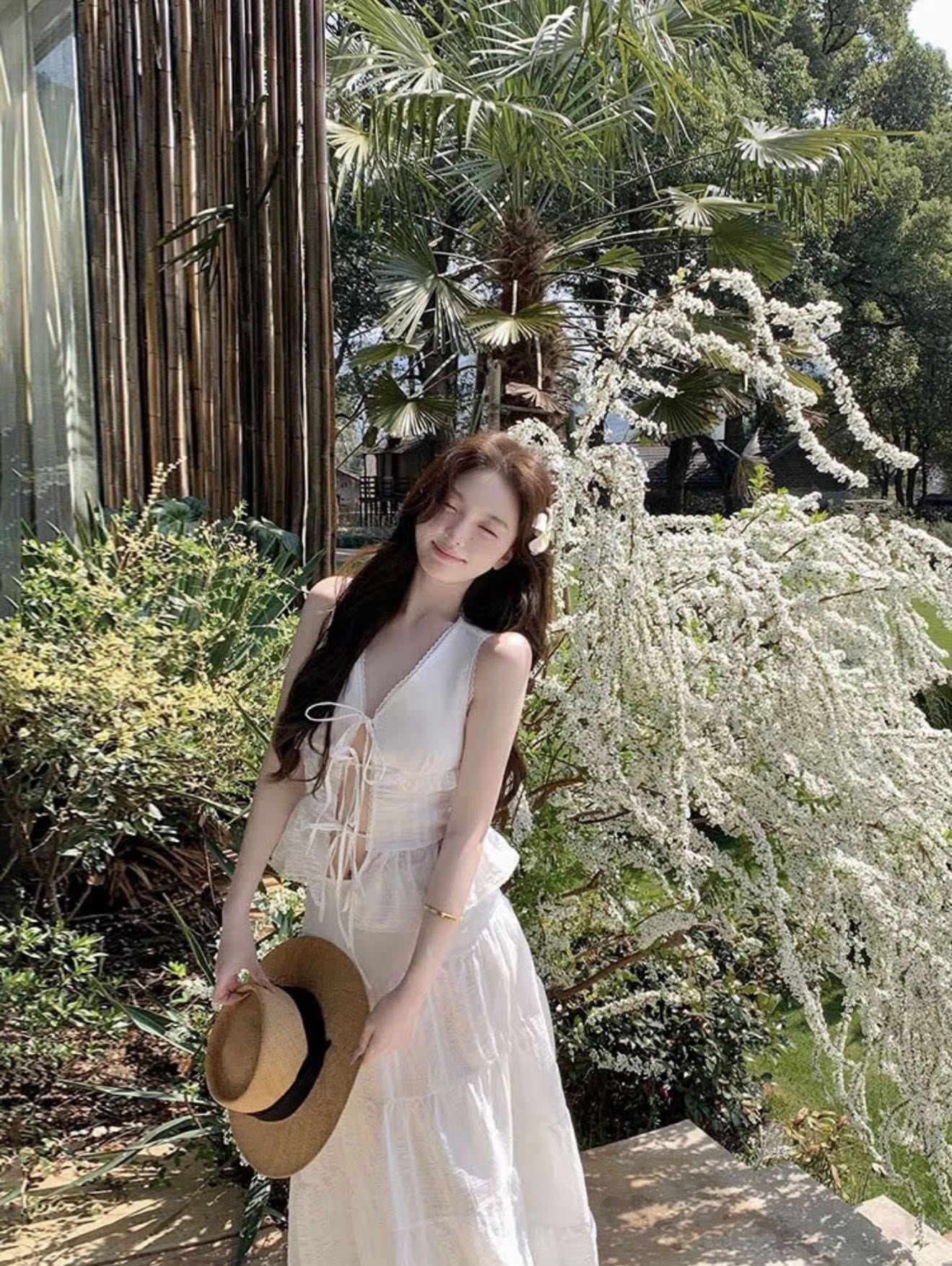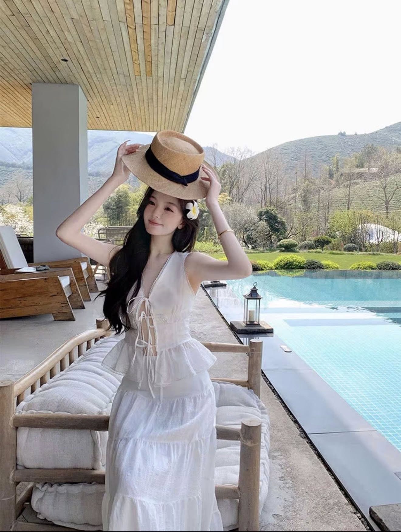 SET ÁO SÁT NÁCH CỘT DÂY + CHÂN VÁY TẦNG DÀI