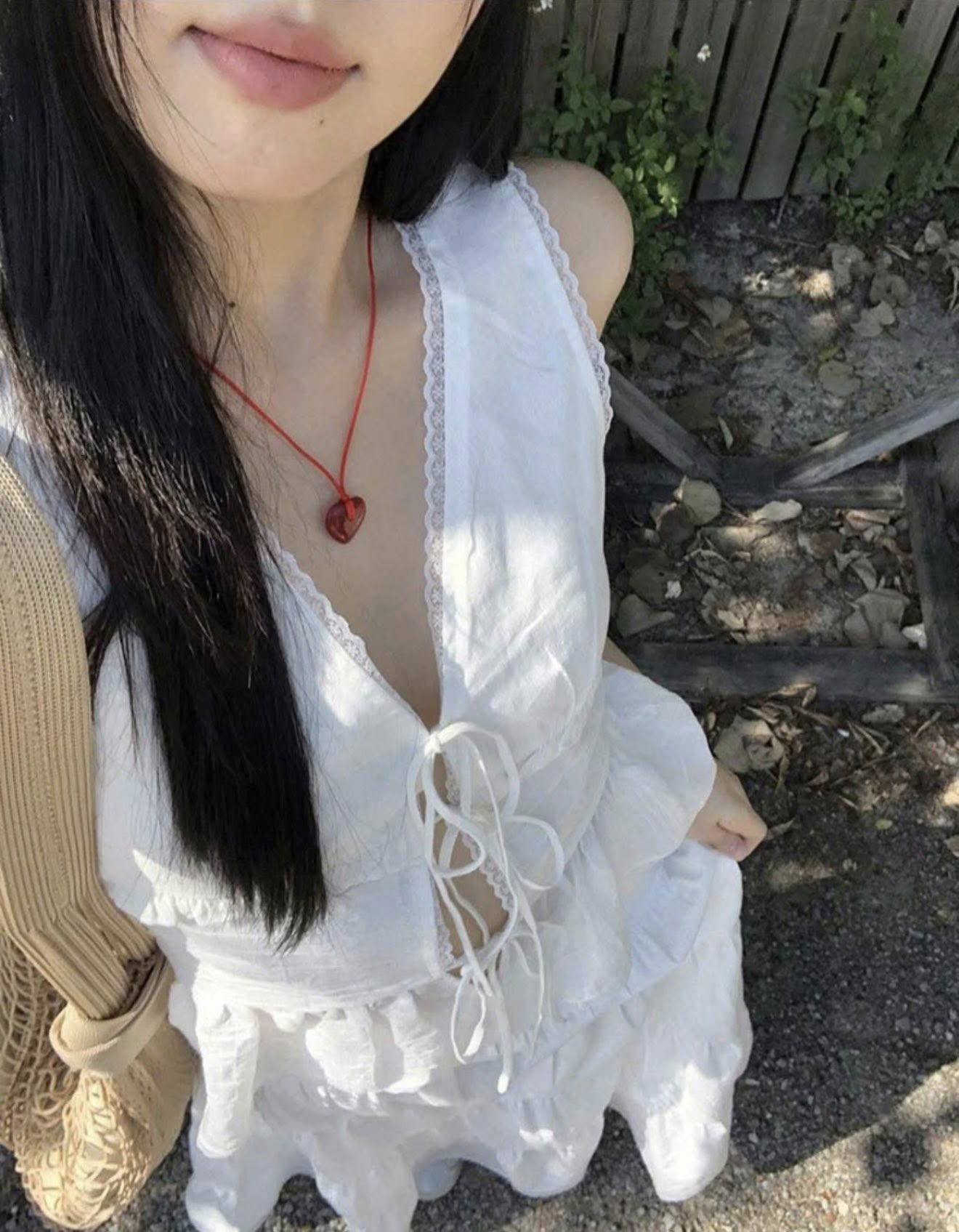 SET ÁO REN 2 DÂY + CHÂN VÁY LƯỚI
