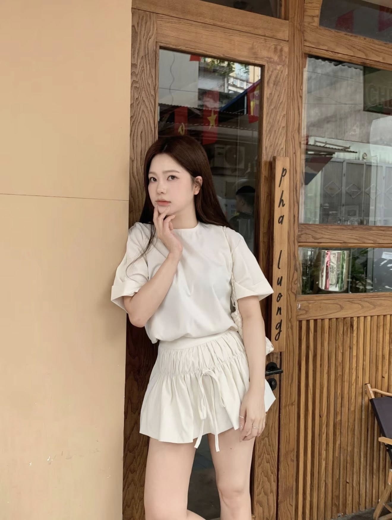SET ÁO THUN NHẪN BÈO + CHÂN VÁY NGẮN