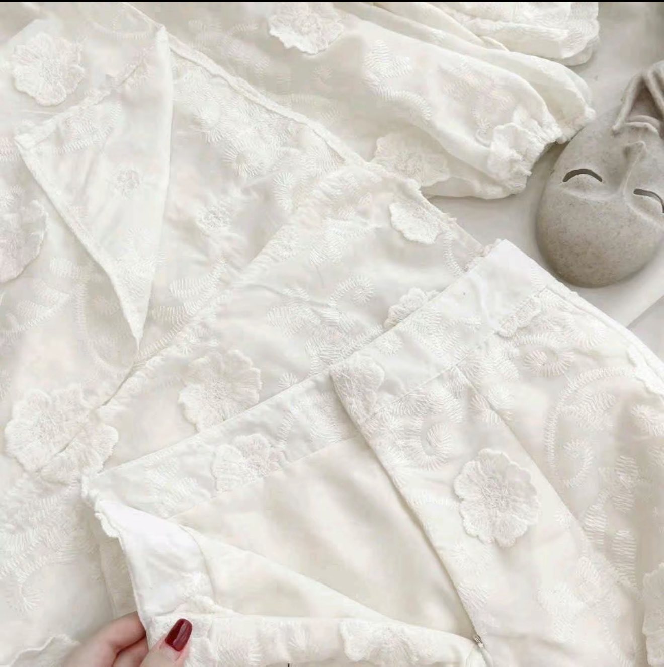 SET ÁO KIỂU KẾT HOA + CHÂN VÁY NGẮN