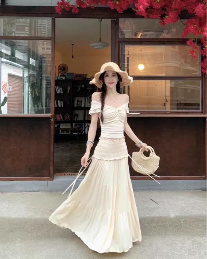SET ÁO TRỄ VAI + CHÂN VÁY RÚT EO.