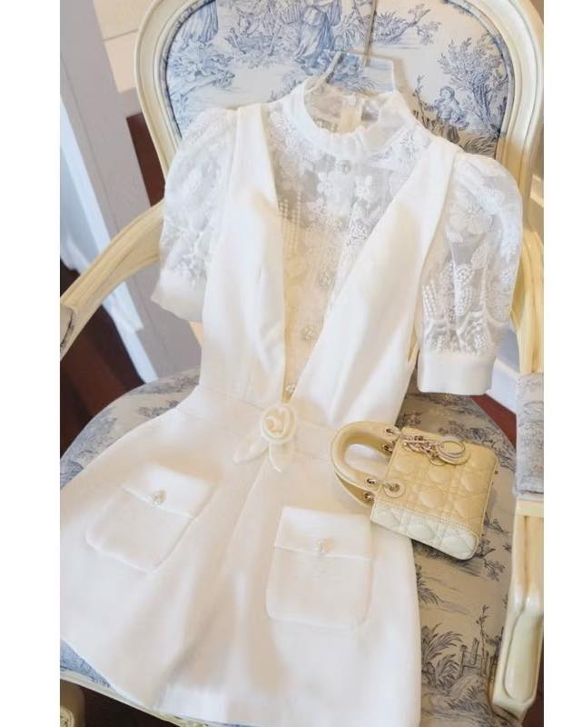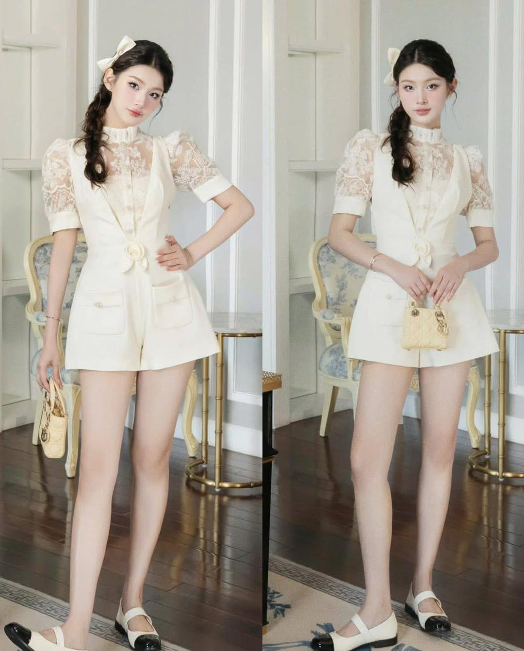 SET JUMPSUIT CỔ V + ÁO REN MỎNG TAY NGẮN