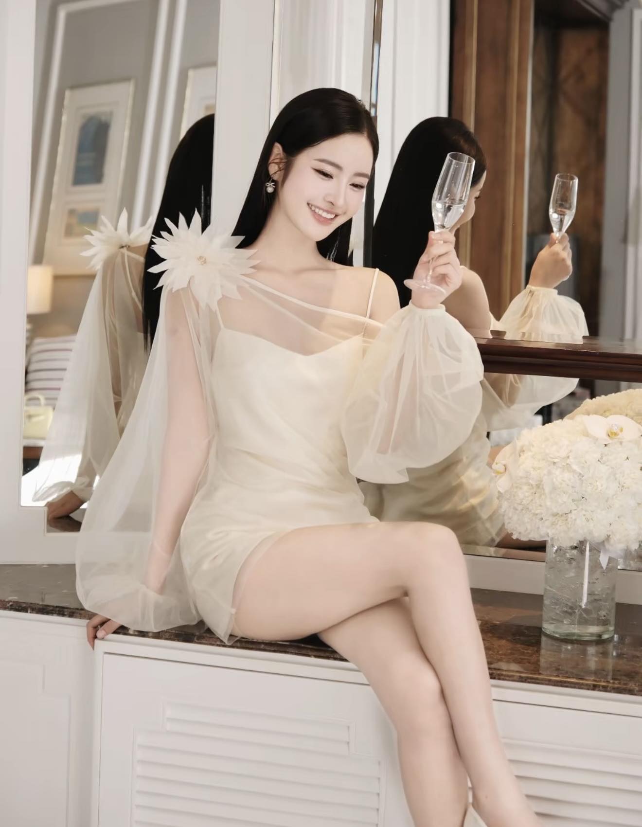 ĐẦM VOAN LƯỚI CUP NGỰC LỆCH VAI