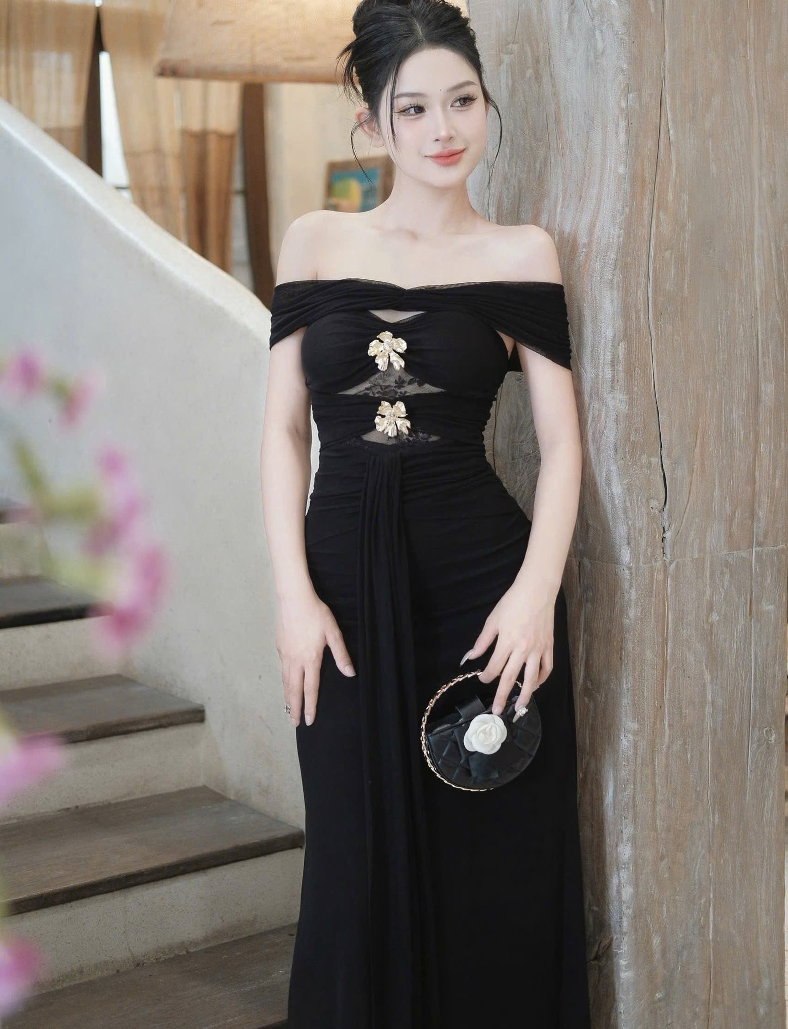 ĐẦM MAXI NHÚN BÈO TRỄ VAI