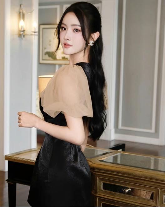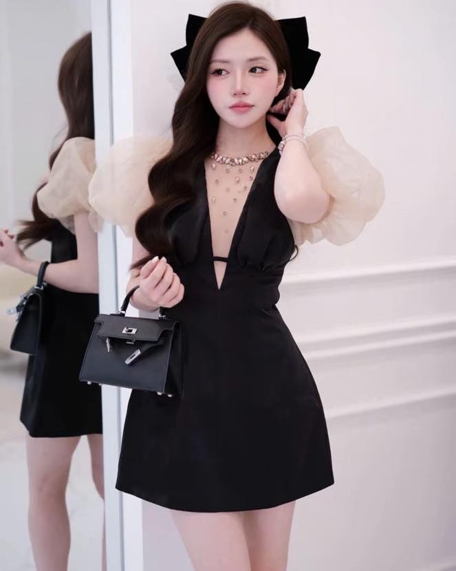 ĐẦM NGẮN KHOÉT NGỰC PHỐI TAY PHỒNG