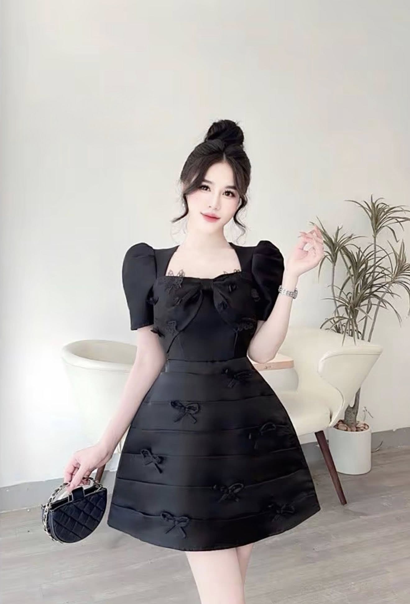 ĐẦM NGẮN TAY BỒNG ĐÍNH NƠ