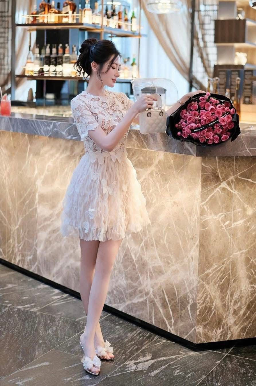 ĐẦM REN HOA DÁNG NGẮN PHỐI LƯỚI