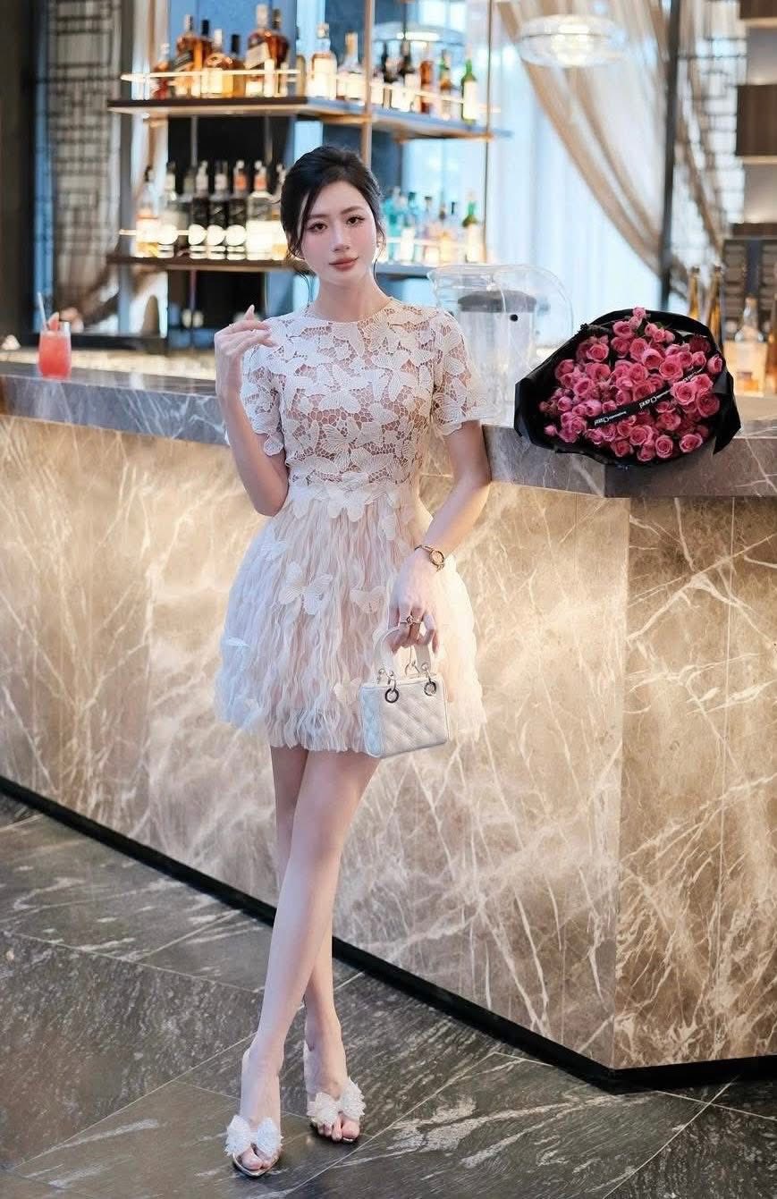 ĐẦM REN TRỄ VAI PHỐI NƠ