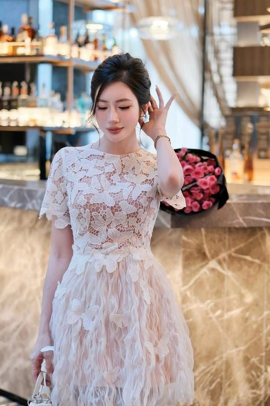 ĐẦM REN TAY NGẮN TÀ ĐẮP KIỂU