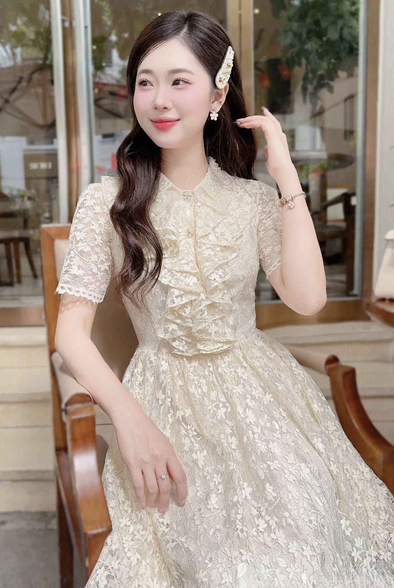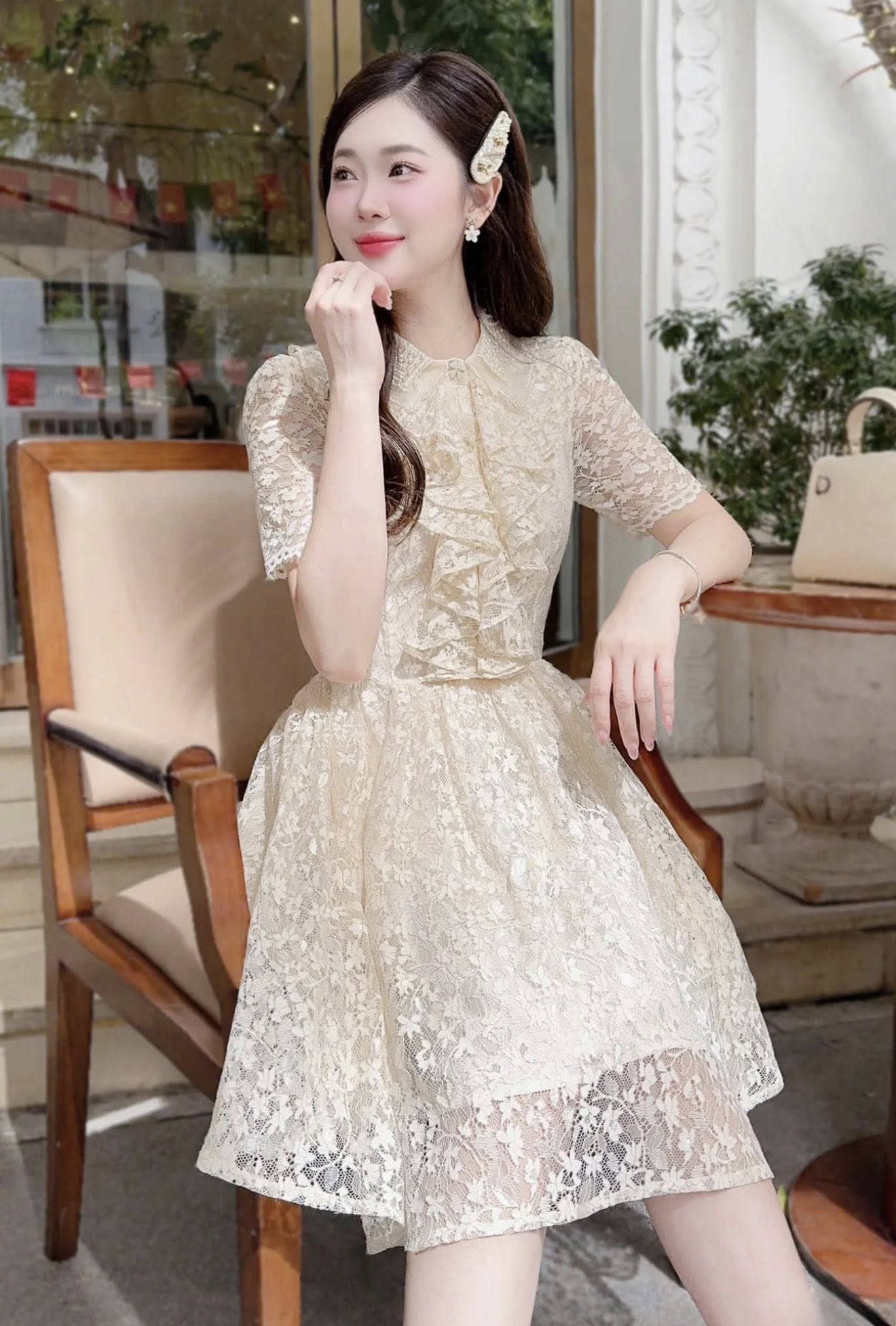 ĐẦM REN TAY NGẮN TÀ ĐẮP KIỂU