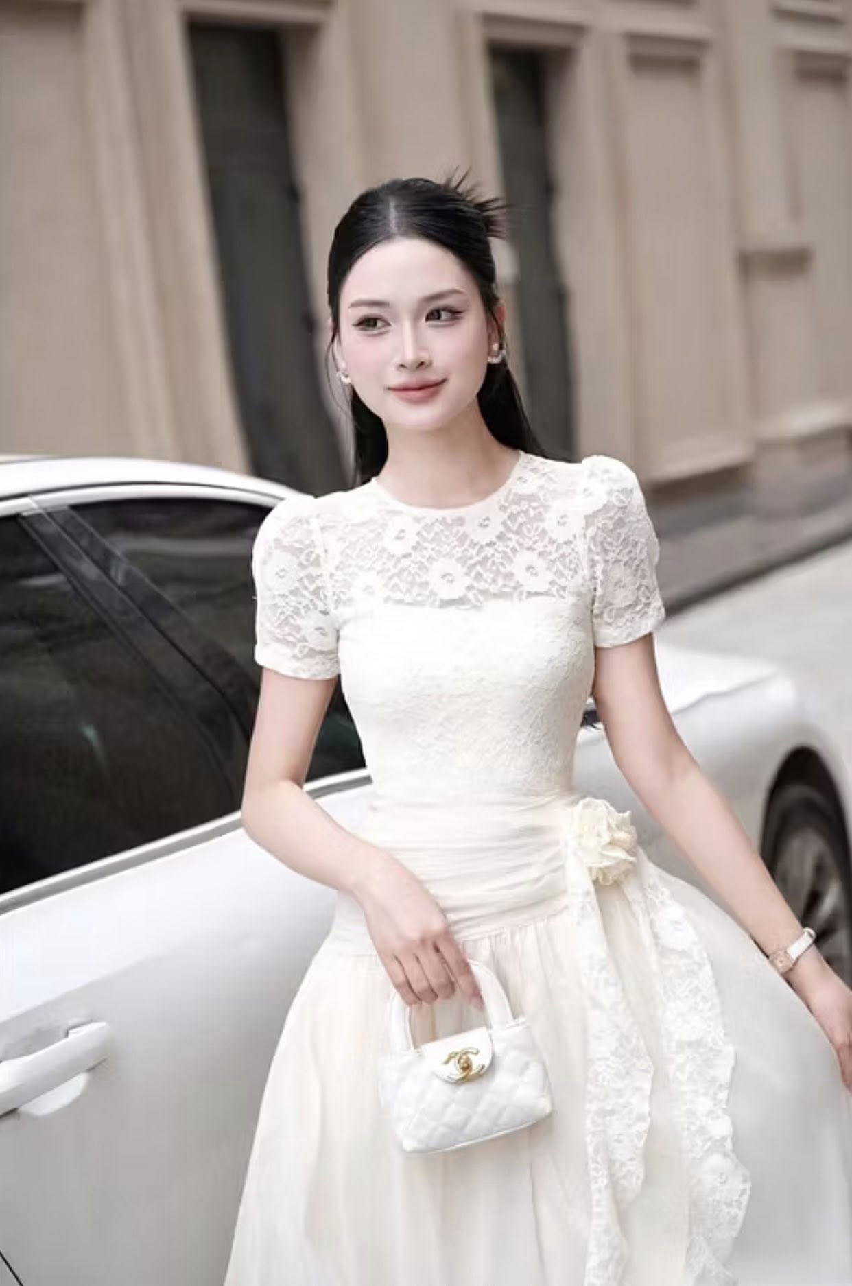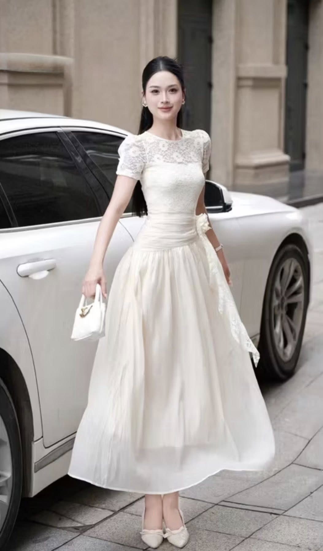 ĐẦM REN TAY NGẮN TÀ ĐẮP KIỂU