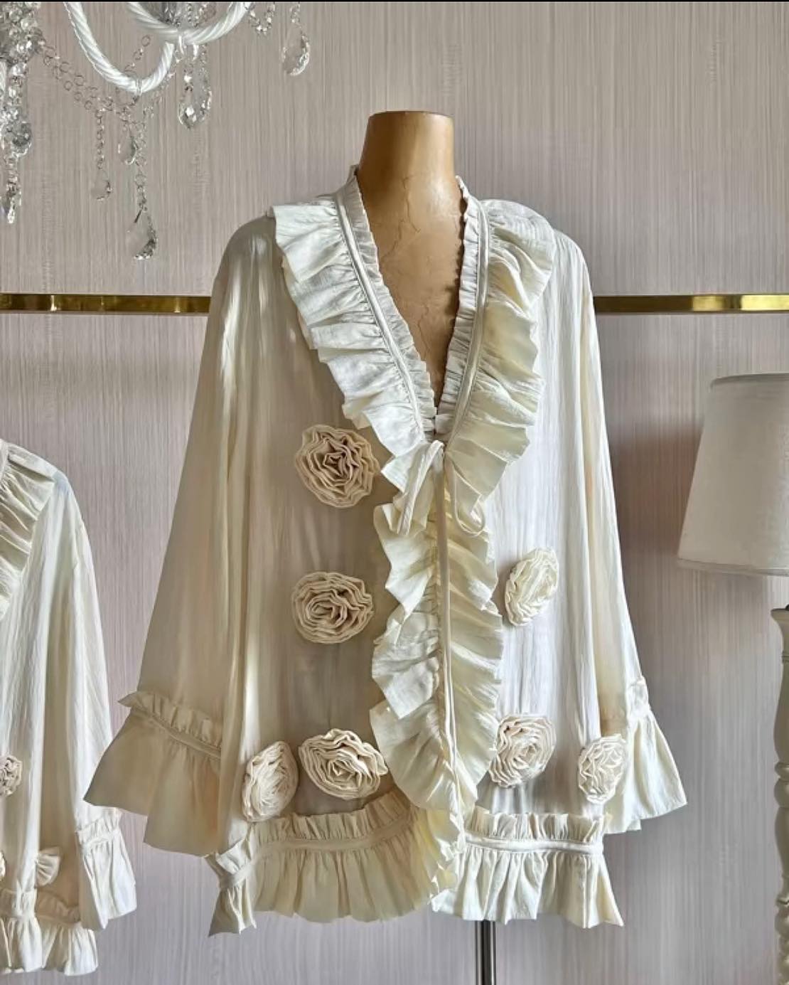 ĐẦM TAY DÀI NHẪN BÈO ĐÍNH HOA