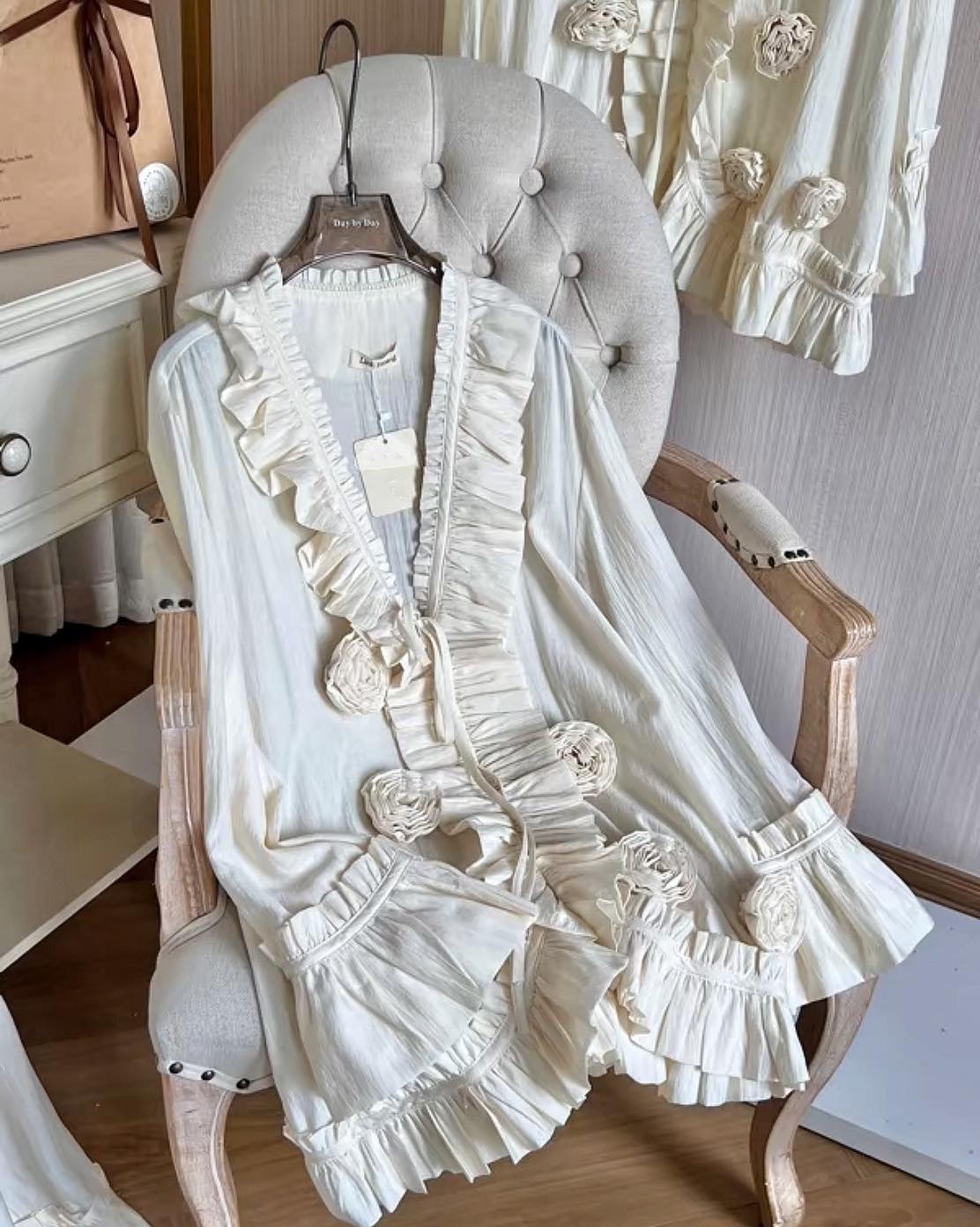 ĐẦM 2 DÂY KÈM ÁO KHOÁC VOAN TAY BỒNG
