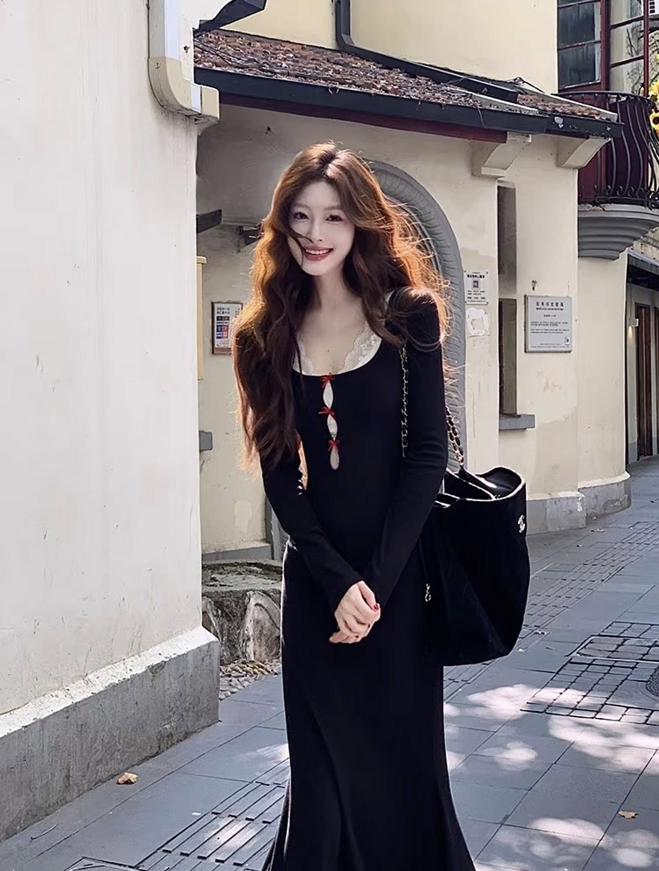 ĐẦM XÒE CỔ YẾM DÁNG DÀI PHỐI REN