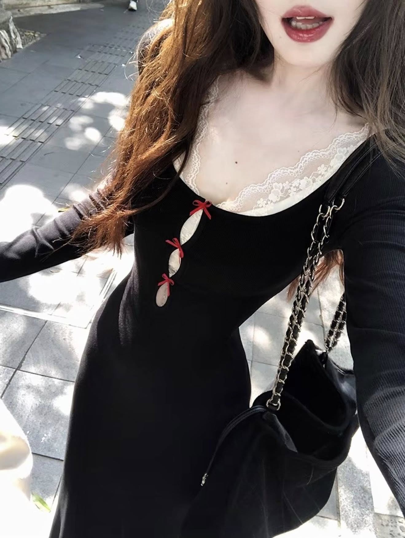 ĐẦM REN TRỄ VAI PHỐI NƠ