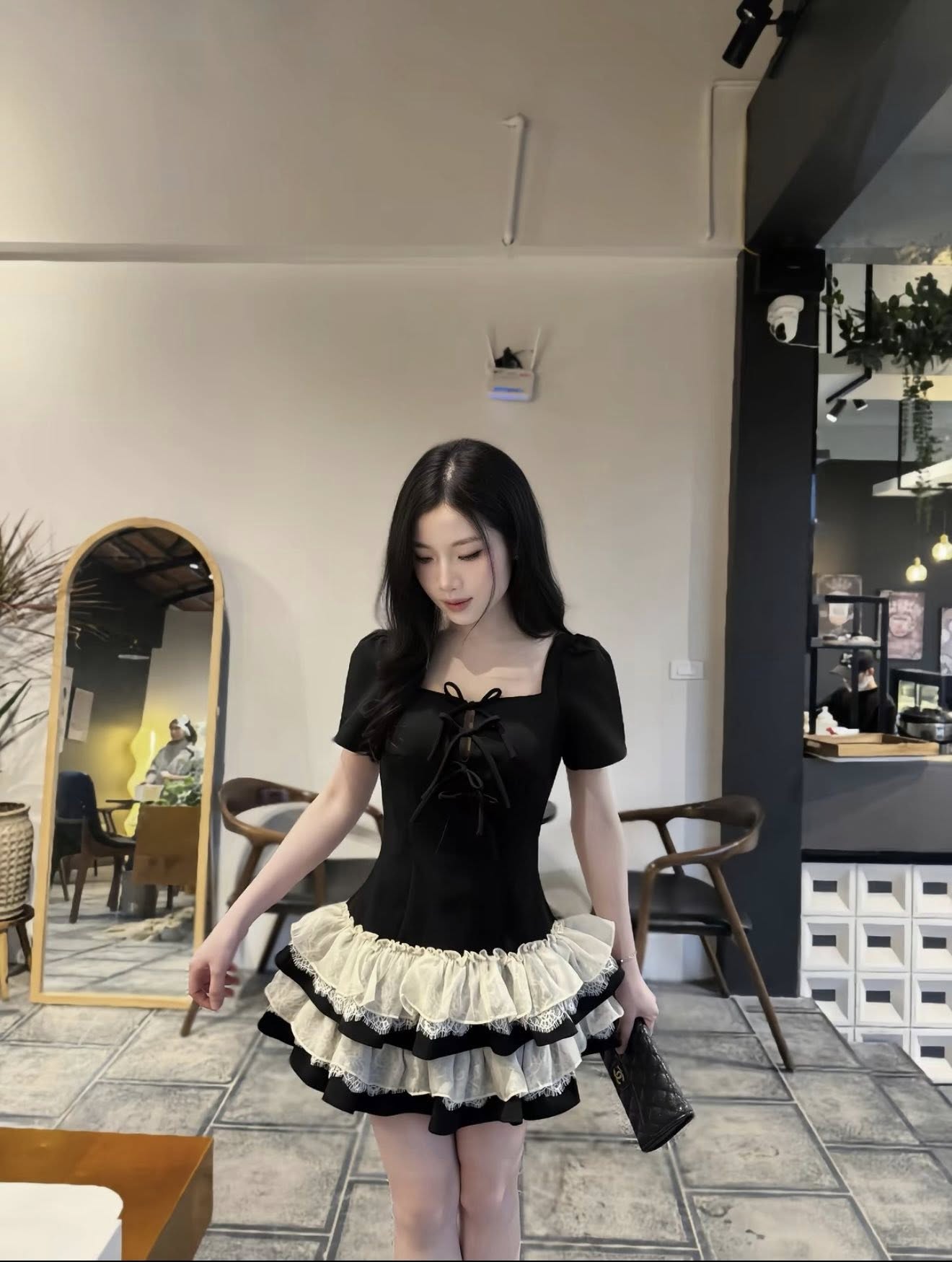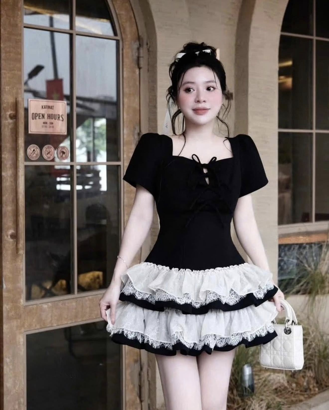 ĐẦM REN TRỄ VAI PHỐI NƠ