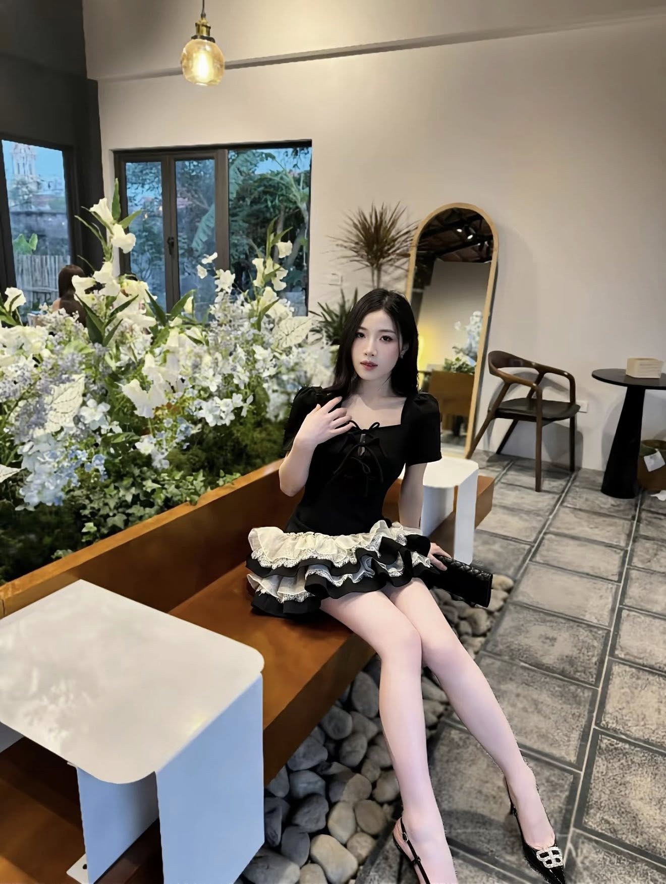 ĐẦM VOAN NGẮN 2 DÂY BÈO TẦNG