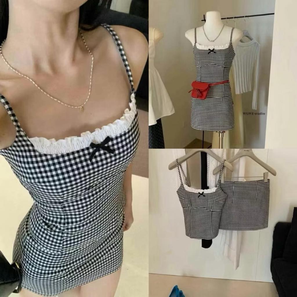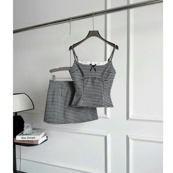SET ÁO 2 DÂY CARO + CHÂN VÁY