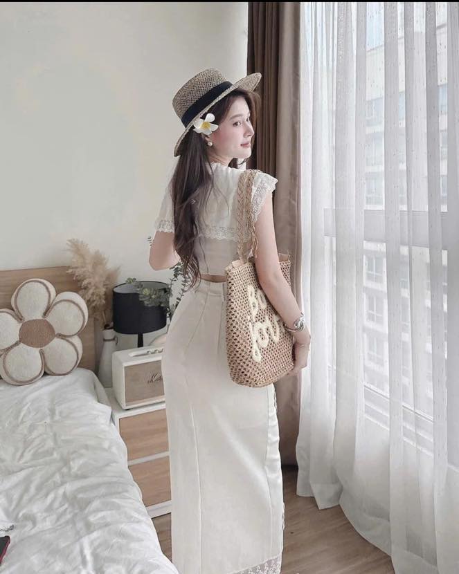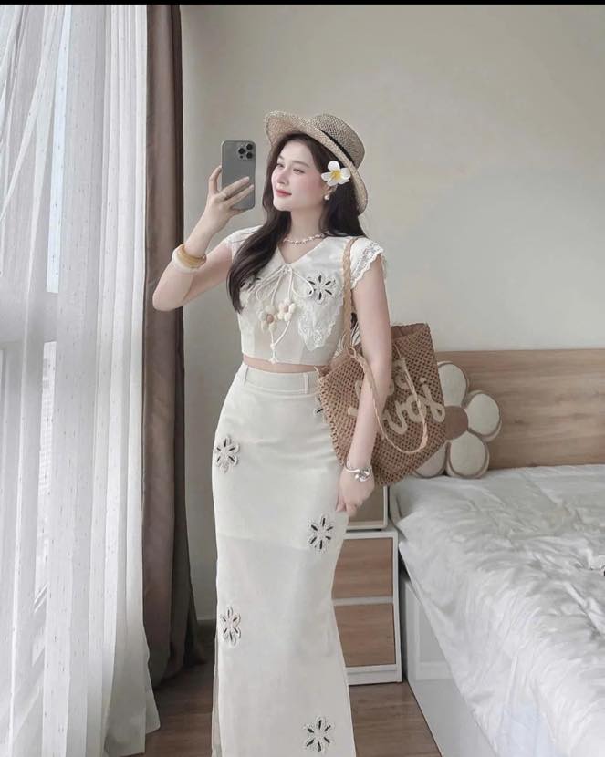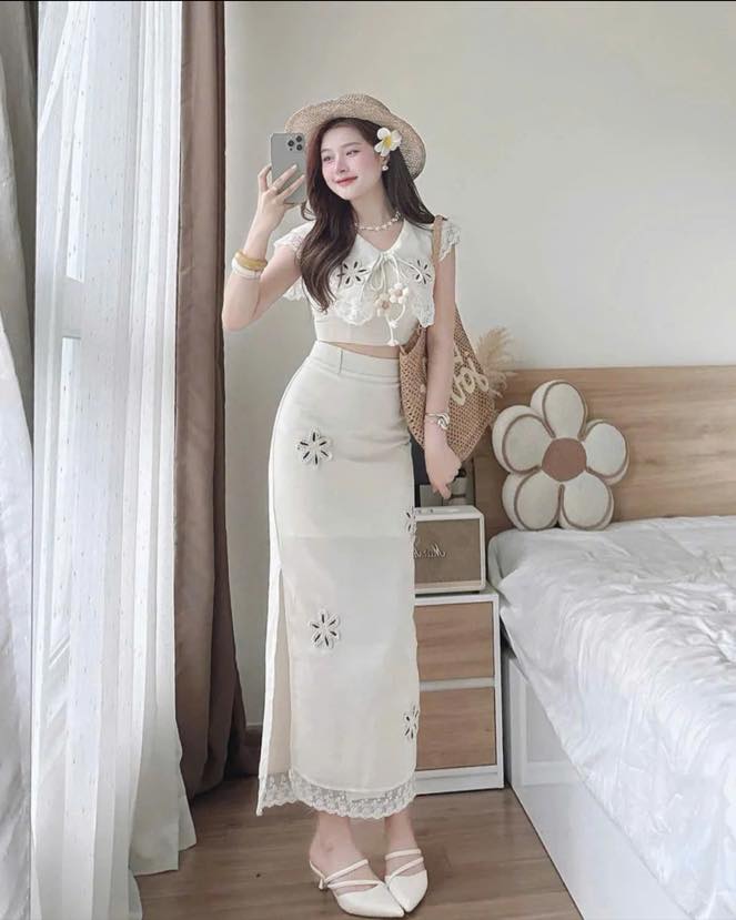 SET ÁO REN + CHÂN VÁY DÀI KIỂU