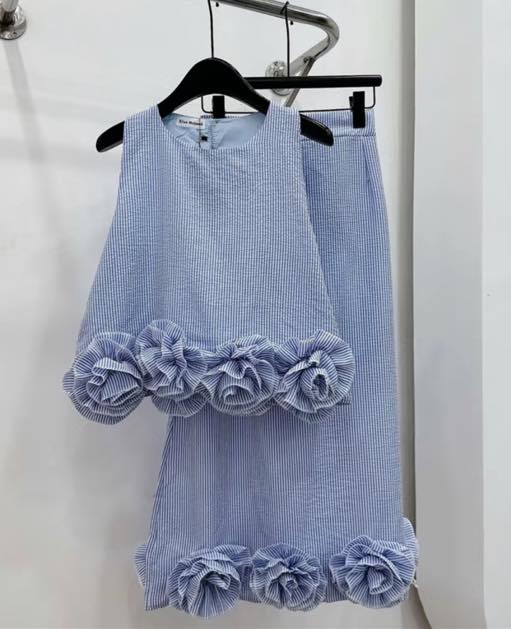 SET ÁO KẺ SÁT NÁCH + CHÂN VÁY KẾT HOA