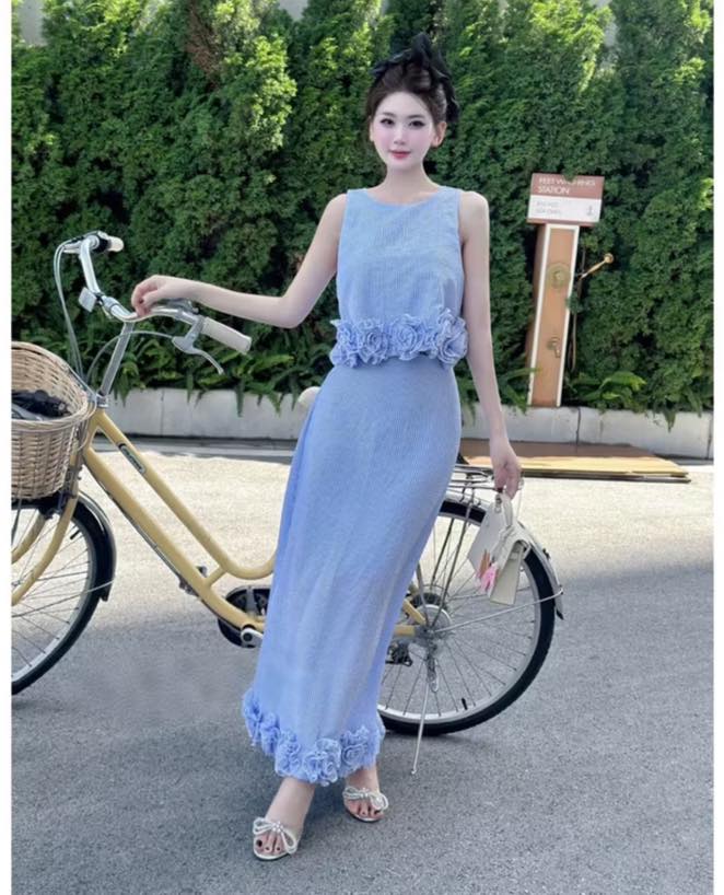 SET ÁO SÁT NÁCH + CHÂN VÁY KẾT HOA