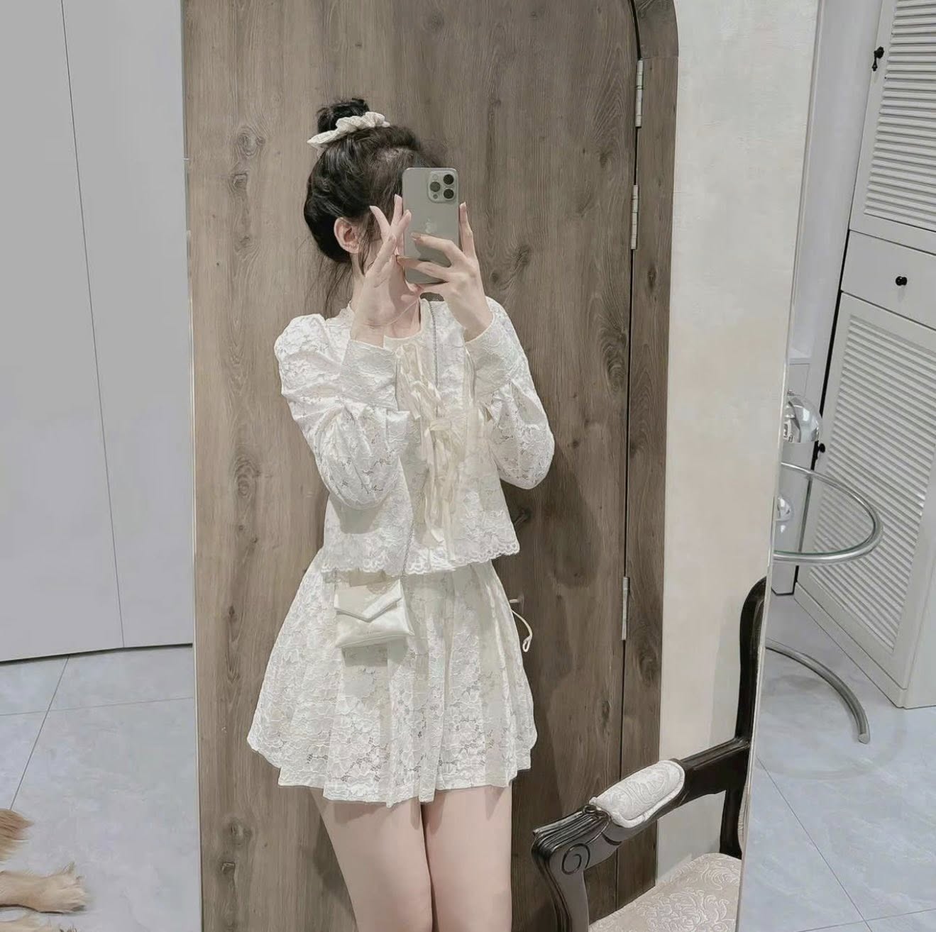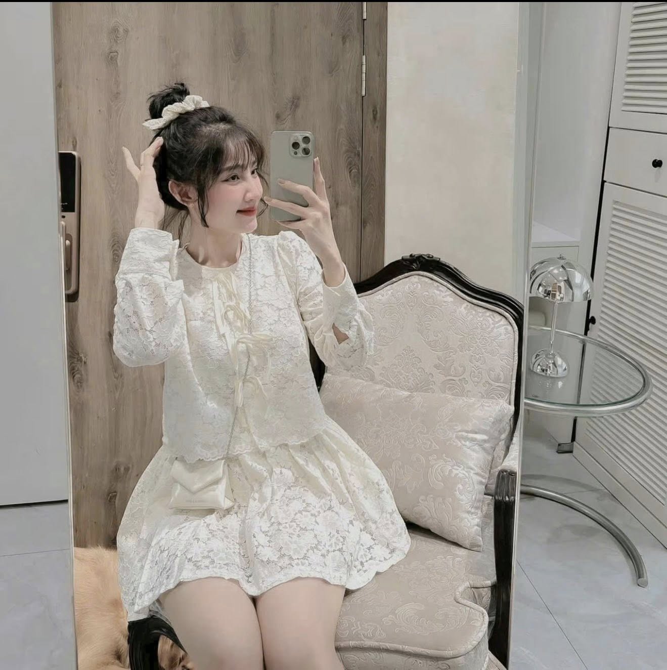 SET ÁO REN THẮT NƠ + CHÂN VÁY NGẮN