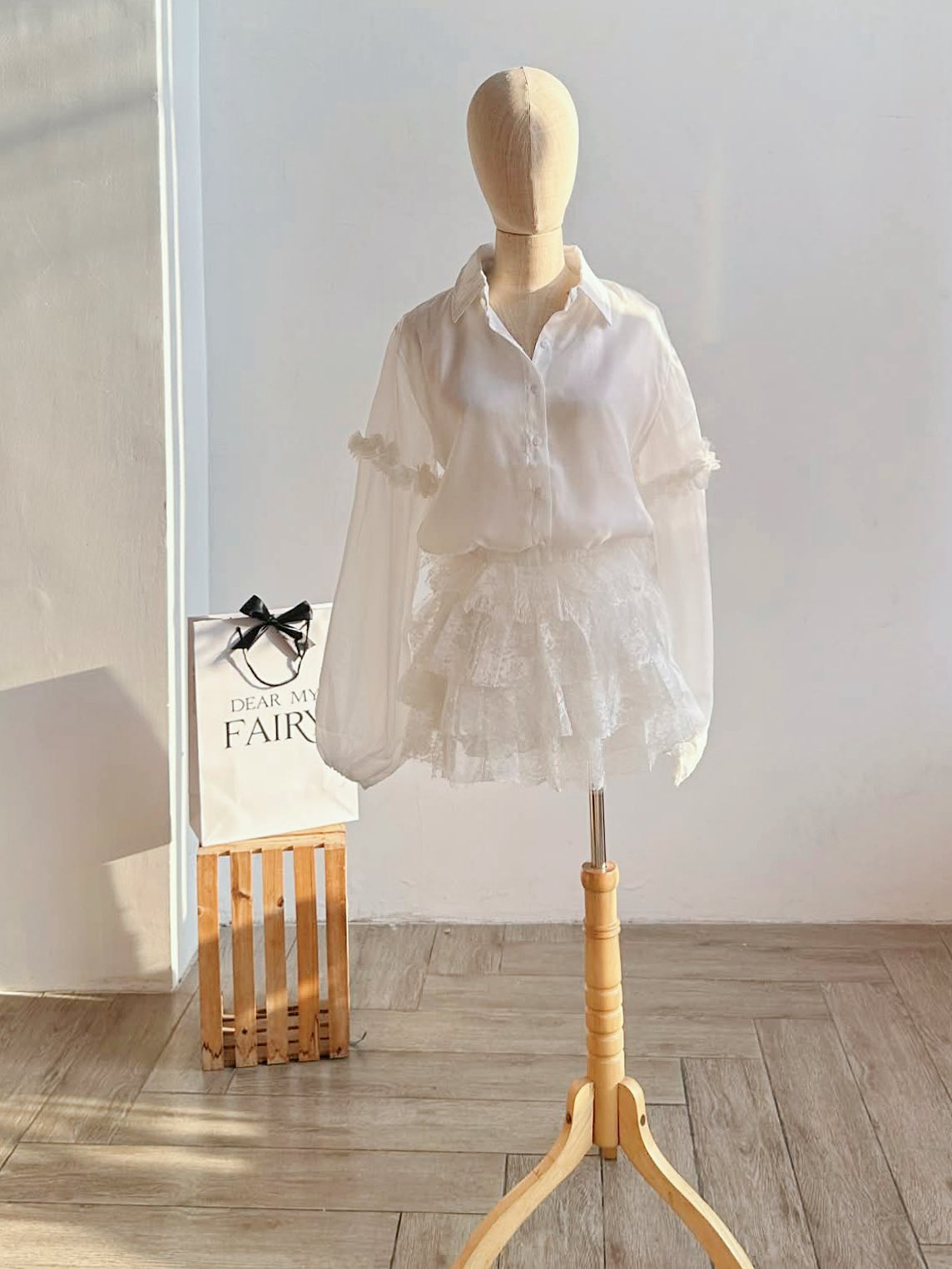 SET ÁO SƠ MI KÈM DÂY HOA + CHÂN VÁY REN
