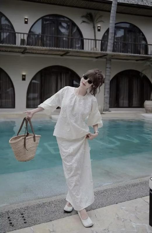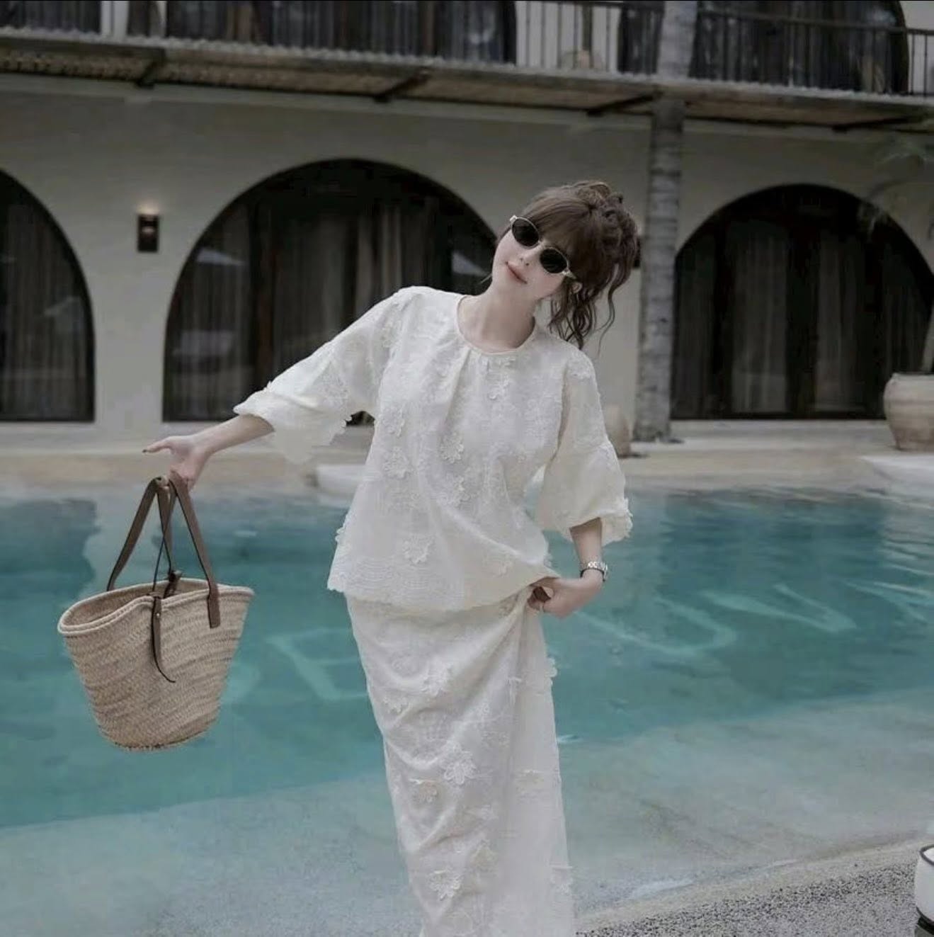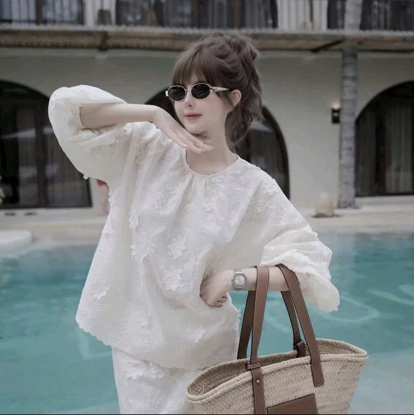 SET ÁO REN + CHÂN VÁY DÀI KIỂU