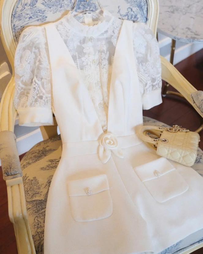 SET JUMPSUIT CỔ V + ÁO REN MỎNG TAY NGẮN